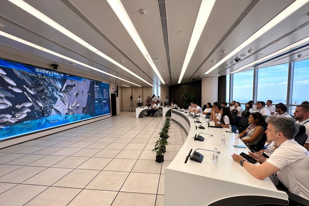 各国青年在青岛国信海天中心考察智慧系统。新华社记者 王明玉 摄