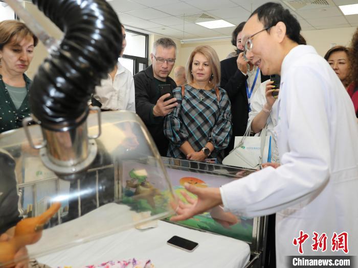 外籍医疗工作者在西安中医脑病医院参观中医疗法。西安中医脑病医院 供图