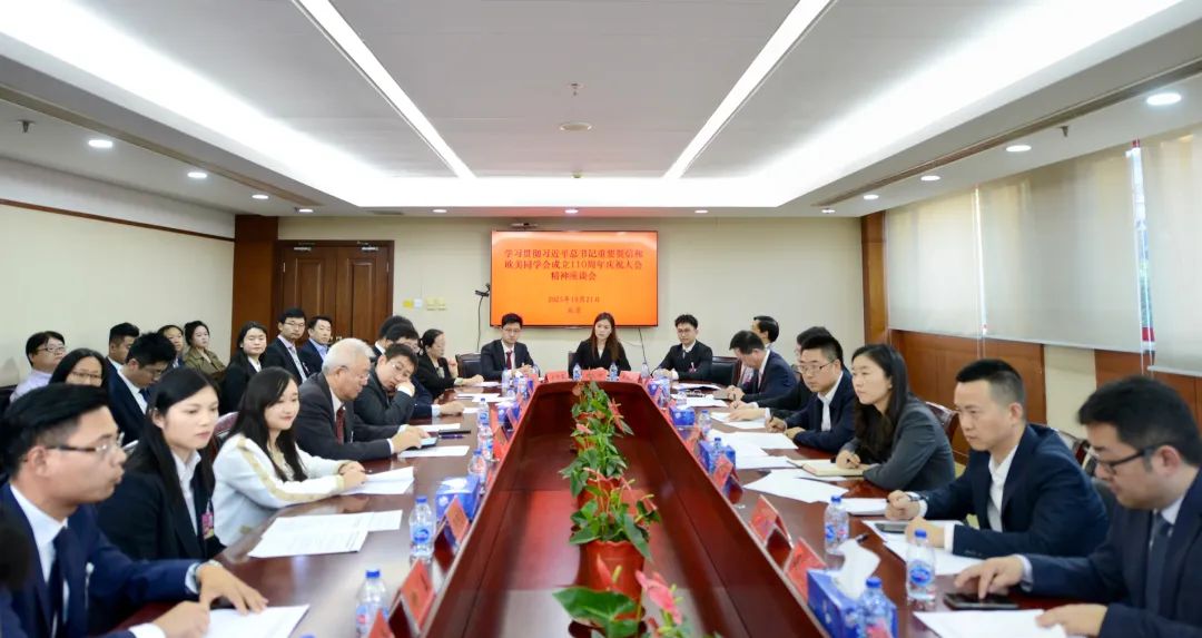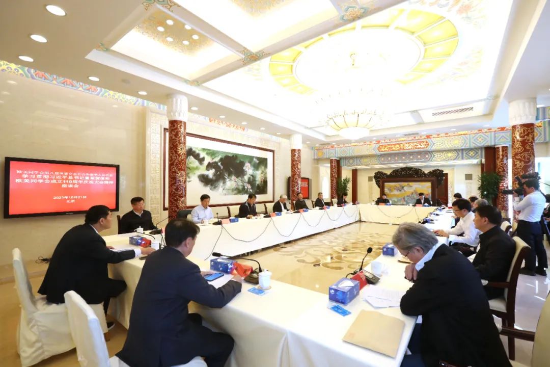 10月21日下午,欧美同学会召开第八届理事会会长会及留学人员代表座谈会,专题学习贯彻习近平总书记重要贺信和欧美同学会成立110周年庆祝大会精神。全国人大常委会副委员长、欧美同学会会长丁仲礼主持并讲话;副会长刘利民、黄卫、王春法、曹卫星、闫傲霜、安立佳、程林、陈贵云、潘建伟、李林、姚望、李一,留学人员代表高福、严建文、吴昊参加座谈会并发言。