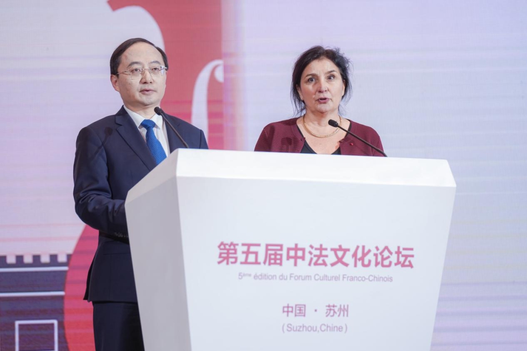 江苏省苏州市副市长查颖冬,法国展望与创新基金会总干事艾玛纽埃尔·佩雷斯主持闭幕式