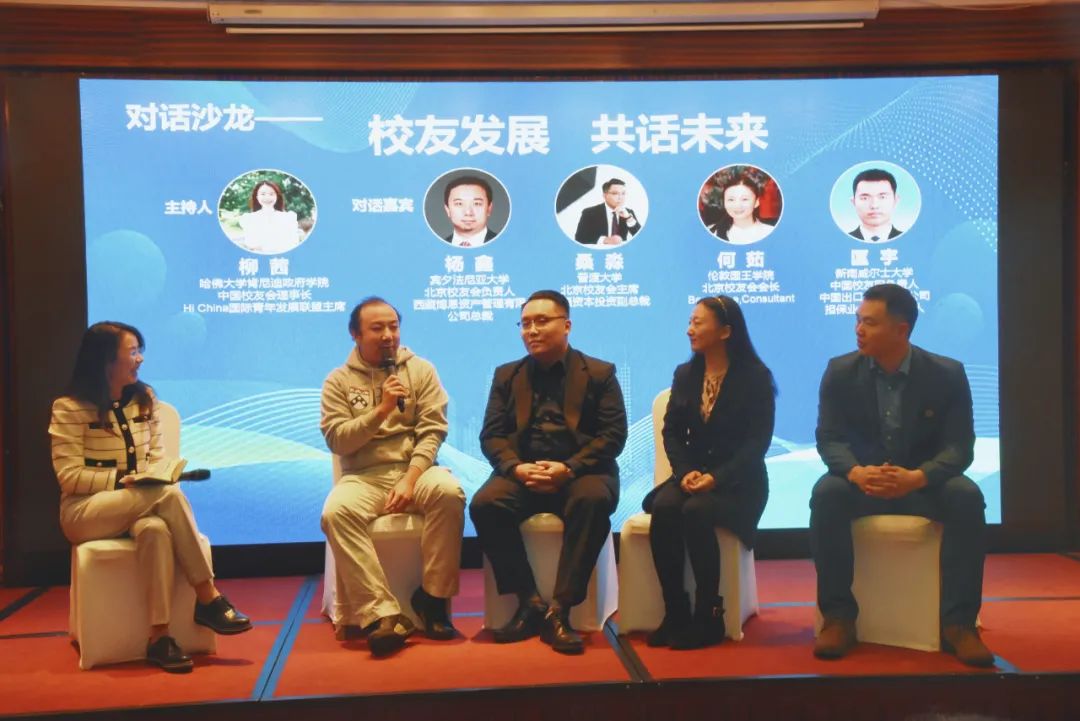 在对话沙龙环节,围绕“校友发展、共话未来”,5位美国、英国、澳大利亚高校校友会代表柳茜、杨鑫、桑淼、何茹、匡宇,共同探讨校友会如何更好创新发展、更好服务归国校友创新创业。