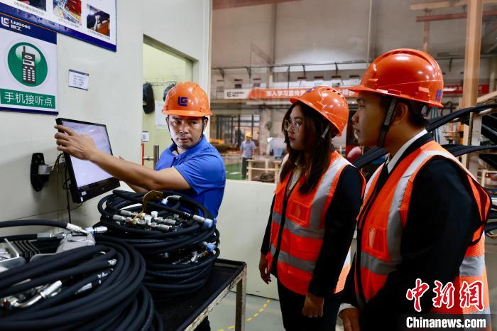 日前,泰国留学生在柳工工厂实地“取经”。 林馨 摄