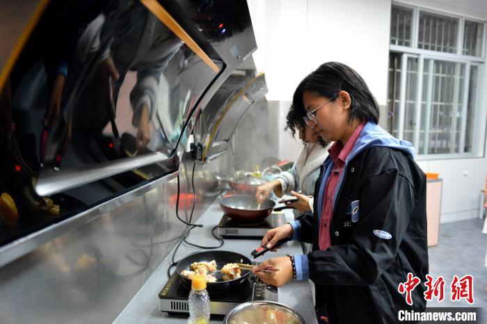 林雅恩正在下厨,准备晚餐。 中新网记者 吕明 摄