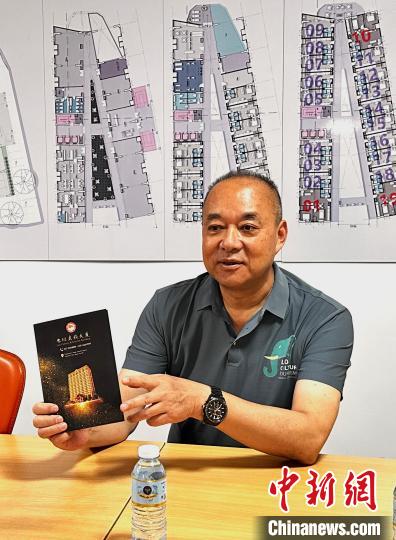 图为11月10日,吕林在办公室向客户介绍正在建设中的老挝文旅大厦。(受访者供图)