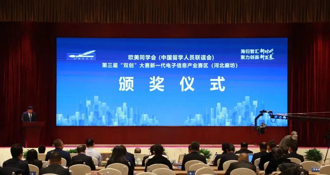 12月12日,欧美同学会第三届“双创”大赛新一代电子信息产业赛区(河北廊坊)决赛在河北廊坊举行。欧美同学会党组成员、副秘书长程洪明,微波光子学家、中国科学院院士、中国科学院雄安创新研究院院长、新一代电子信息产业赛区赛事专家顾问祝宁华,河北省委统战部副部长张建华,河北欧美同学会秘书长关东亮,廊坊市委常委、组织部部长、统战部部长孙丽娜,廊坊开发区党工委委员、管委会副主任李洪旺出席并为获奖项目和团队颁奖。廊坊市委统战部常务副部长李海坡主持颁奖仪式。