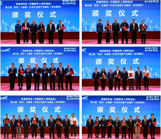 欧美同学会第三届“双创”大赛以“海归智汇新时代 聚力创赢新发展”为主题。新一代电子信息产业赛区(河北廊坊)由河北欧美同学会、中共廊坊市委、廊坊市人民政府承办,中共廊坊市委统战部、廊坊经济技术开发区管理委员会协办。自大赛启动以来,共吸引来自北京、上海、深圳、中国香港等多个城市、地区及欧洲、北美洲等海外地区的518个项目参赛,项目涵盖通信、物联网、人工智能、集成电路、云计算、大数据等多个细分领域。