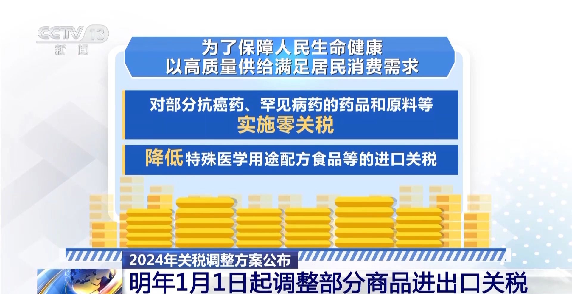 为了保障人民生命健康,以高质量供给满足居民消费需求,对部分抗癌药、罕见病药的药品和原料等实施零关税,降低特殊医学用途配方食品等的进口关税。