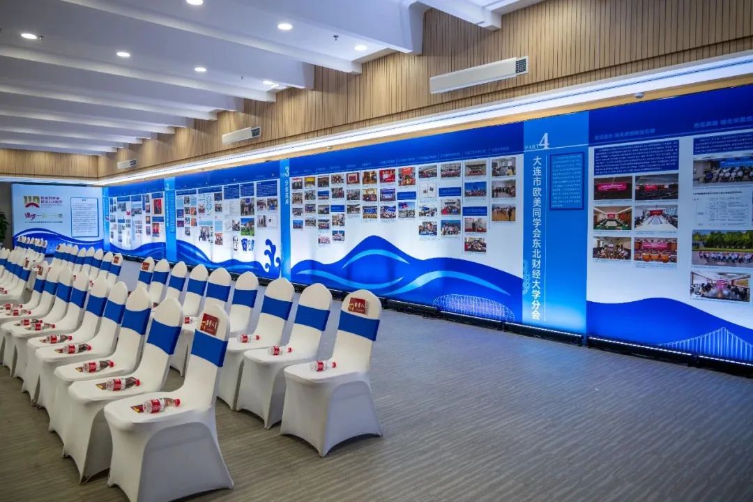 本次展览由三个展区构成,分别是图文展区、多媒体展区和留学人员创新创业机器人成果展区,展示了欧美同学会的发展历史、大连市欧美同学会工作、各区市县和高校分会剪影、东北财经大学分会工作等,呈现欧美同学会110年来的重要事件和杰出人物,梳理展示了大连市留学工作的品牌和亮点,广泛宣传了留学人员在围绕中心、服务大局方面作出的贡献,引领留学人员不忘留学初心,牢记报国使命。