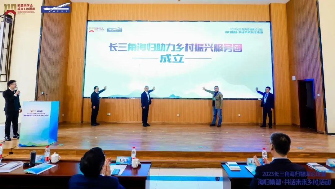 在政产学研圆桌对话环节,专家学者代表以未来乡村产业场景、风貌场景为切入口,从未来乡村建设方向、运营模式、区域规划、直播电商助力、农文旅品牌打造、民族乡村振兴等角度进行深度对话交流,共同为长三角区域乡村振兴发展和未来乡村建设提出实践构想。为进一步凝聚广大海归的智慧和力量,服务长三角地区实施乡村振兴战略,长三角海归助力乡村振兴服务团成立。