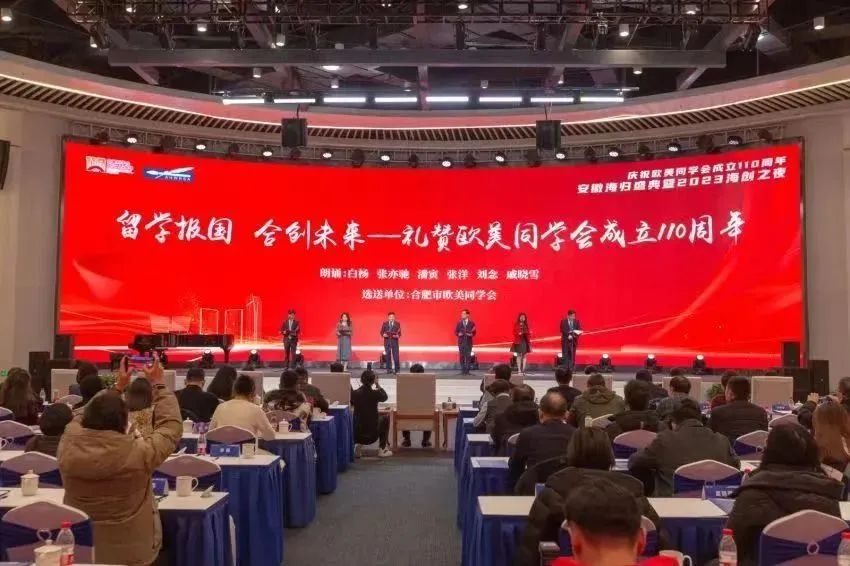 活动期间,举办了庆祝欧美同学会成立110周年安徽海归盛典暨2023海创之夜,学长们自编自导自演了丰富多彩的文艺节目,弘扬主旋律、共话报国情。安徽欧美同学会理事会成员、各市各单位欧美同学会负责人和归国留学人员代表200余人参加活动。