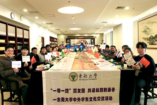 (神州学人网讯)近日,东南大学举办中外学生文化交流论坛。论坛以“‘一带一路’朋友圈,共谱丝路新画卷”为主题,形式新颖、内容丰富,30名来自巴基斯坦、孟加拉国、也门、伊朗、越南、泰国、哈萨克斯坦、印度尼西亚等9个共建“一带一路”国家的国际学生深入了解二十四节气、十二生肖等中华传统文化,体验中国书法,学写春联与福字,畅想共建“一带一路”的美好未来。