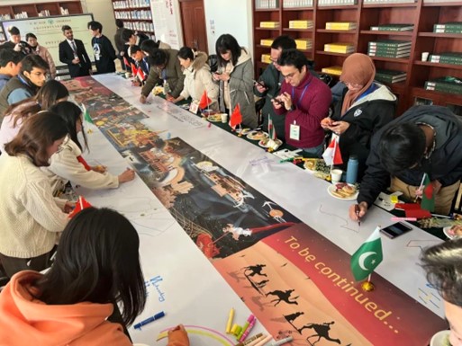 国际学生也分享了自己家乡的文化。在他们眼中,“灿烂(Brilliant)”“经济(Economy)”“团结(Unity)”“交流(Exchange)”“和平(Peace)”“友谊(Friendship)”是属于“一带一路”的关键词,他们用诚挚热情的语言、坦诚友好的真心,把对共建“一带一路”与中国的美好愿望、诚挚祝福绘制成一幅“心心相连”的温情画卷,并表示,将团结合作、踔厉奋发,共同将火热的青春投入到共建“一带一路”高质量发展的事业中。