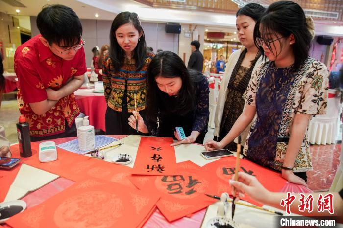 当日的中国传统文化体验活动还有剪窗花、猜字谜等。“春节是中国隆重盛大的传统节日,承载了丰厚的历史文化底蕴,让我们体验到了中国文化之美。”来自柬埔寨磅湛省的陈利华说。