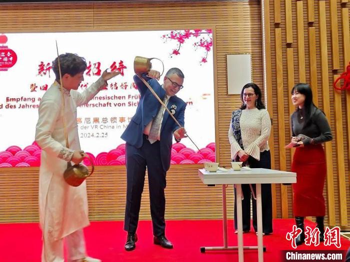 中国驻慕尼黑总领事童德发在致辞中介绍了2023年中国在全面建设社会主义现代化国家新征程上所取得的成就,并表示,去年底召开的中央外事工作会议进一步明确了中国特色大国外交的目标和方向,展现了中国愿同世界各国一道推动构建人类命运共同体的责任担当。中国将不断推进高质量发展、不断深化高水平对外开放,推动世界走向和平、安全、繁荣、进步的光明前景。