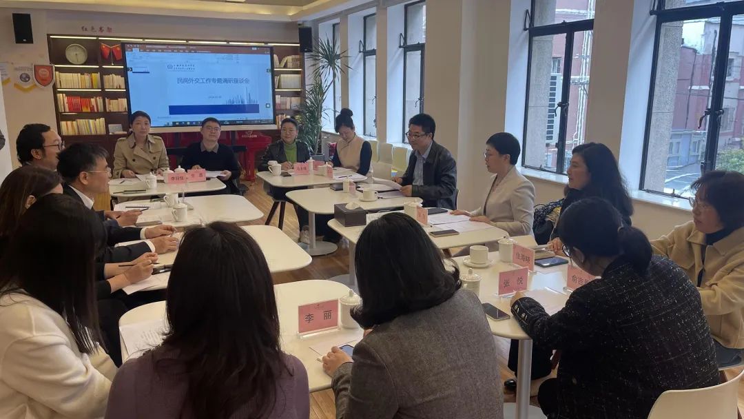 民间外交工作座谈会上,调研组认真听取上海市欧美同学会民间外交工作骨干会员的发言,围绕积极发挥留学人员作用、开展民间外交工作的特色亮点开展座谈,就相关问题进行交流探讨。聚焦新时代新情况,研究完善留学人员民间外交工作的体制机制,努力破解存在的困难和问题,在此基础上谋划“统一品牌、地方特色、整体宣传、统筹推进”的欧美同学会民间外交品牌活动。留学人员代表座谈会上,结合新时代新征程欧美同学会面临的新形势新任务,调研组围绕如何继续发挥民间外交生力军作用、更好团结引领海内外留学人员讲好中国故事、助力构建中外文明交流互鉴的新平台、新路径听取意见建议。