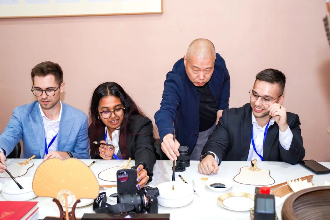 活动期间,中外留学青年一同走进南宋德寿宫遗址博物馆,近距离感受中国千年宋韵文化。在浙江省欧美同学会会址“康庐”,留学青年代表通过双语宣传片了解浙江的风土人情和发展活力。大家共同体验中国书法和绘画,现场感受东方传统文化艺术的独特魅力,并一同观摩茶艺展示,品饮浙江传统名茶,品鉴中国茶文化。