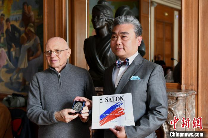 中新网巴黎4月23日电 当地时间4月22日,第235届法国艺术家沙龙(Salon des Artistes Français)展颁奖仪式在巴黎五区区政府举行,中国艺术家王盈荣获银奖,中国国家画院的林容生、邓柯荣获铜奖,赵培智、王辅民、郭子良、张蒙荣获提名奖。
