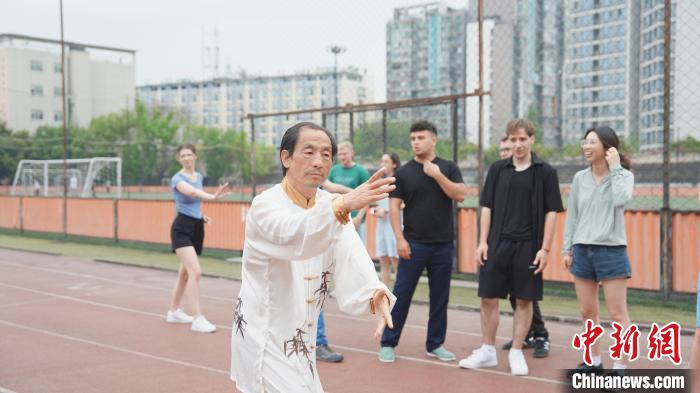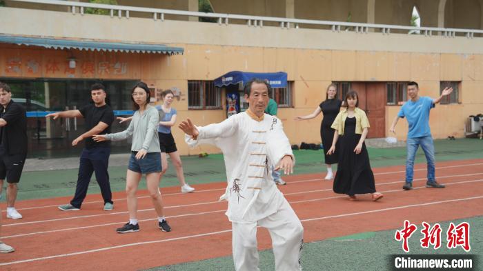 图为西南交大老师刘剑荣(中)给德国师生表演太极拳。 廖海 摄