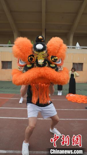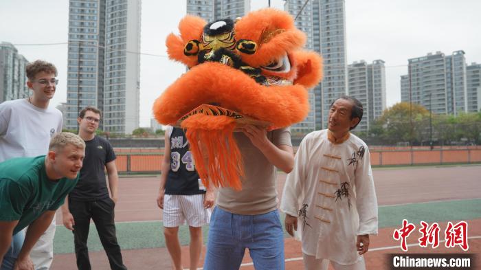 图为德国学生满宏毅学习舞狮子。 廖海 摄