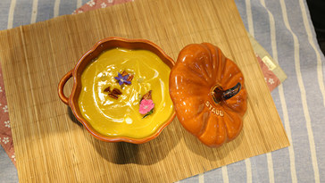 第二道餐”板栗南瓜汤“,板栗和南瓜都是秋季的成熟果实,因为特性和色泽的相似点被厨师完美搭配成了一道温暖的绝味。我想,也许我们行业背景不同,也许我们都有了各自成熟的价值观和生活习惯,但只要我们有一颗同频跳动的心,我们就能遇到另一半的自己。