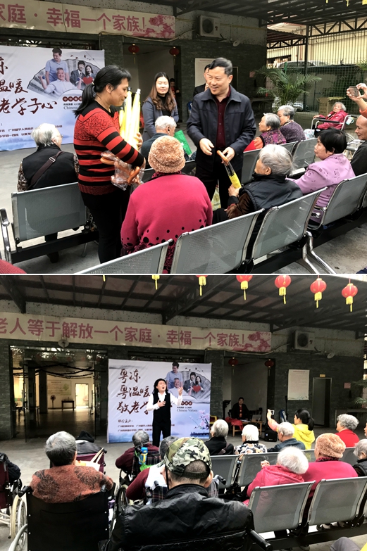 2018年1月17日下午,广州欧美同学会在明禧养老院开展了“粤冻粤温暖·敬老学子心”文艺慰问活动,给长者们送去新年的祝福与问候。我会黄伟霖秘书长,青委会梁铿副主任以及会员代表、广州执信中学学生代表等共60多人参加活动。