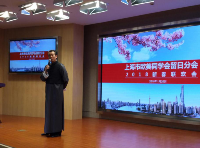 1月20日,留日分会2018年新春联谊会在上海民主党派大厦盛大召开,留日学长100多人欢聚一堂。总会常务副会长、留日分会会长臧广陵,总会常务副会长左学金,昆山市侨务办公室主任谢全林,日本驻上海总领事馆总领事片山和之、领事高岡智子,上海日本商工俱乐部理事长小宮健一,日本贸易振兴机构(JETRO)上海代表处所长小栗道明,日中经济协会上海事务所所长伊藤智,日本主流媒体读卖新闻、朝日新闻、每日新闻驻沪支局长吉永亜希子、冨名腰隆、林哲平等应邀出席。联谊会由著名媒体人吴四海学长主持。