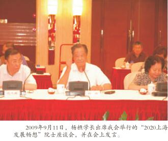 1984年9月,当我会恢复活动时,杨槱学长又是作为第一批会员加入欧美同学会。作为总会名誉理事,杨槱学长一直关心同学会各项工作。2006年和2009年举办的两次院士座谈会上,都有杨槱学长的身影,与大家一同深入研讨未来十年中国科学和技术发展中的重大问题,为上海的社会经济发展建言献策。