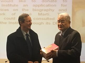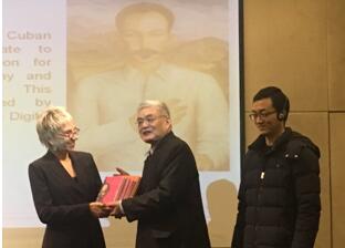 中国社科院荣誉学部委员徐世澄,将中文版《何塞·马蒂诗文选》赠送给塞万提斯学院和古巴驻华使馆。