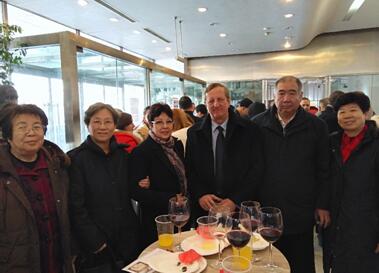 多拉美分会学长(从左至右)孙光英、刘玉琴、张拓、陈红娣与古巴大使夫妇的合影。