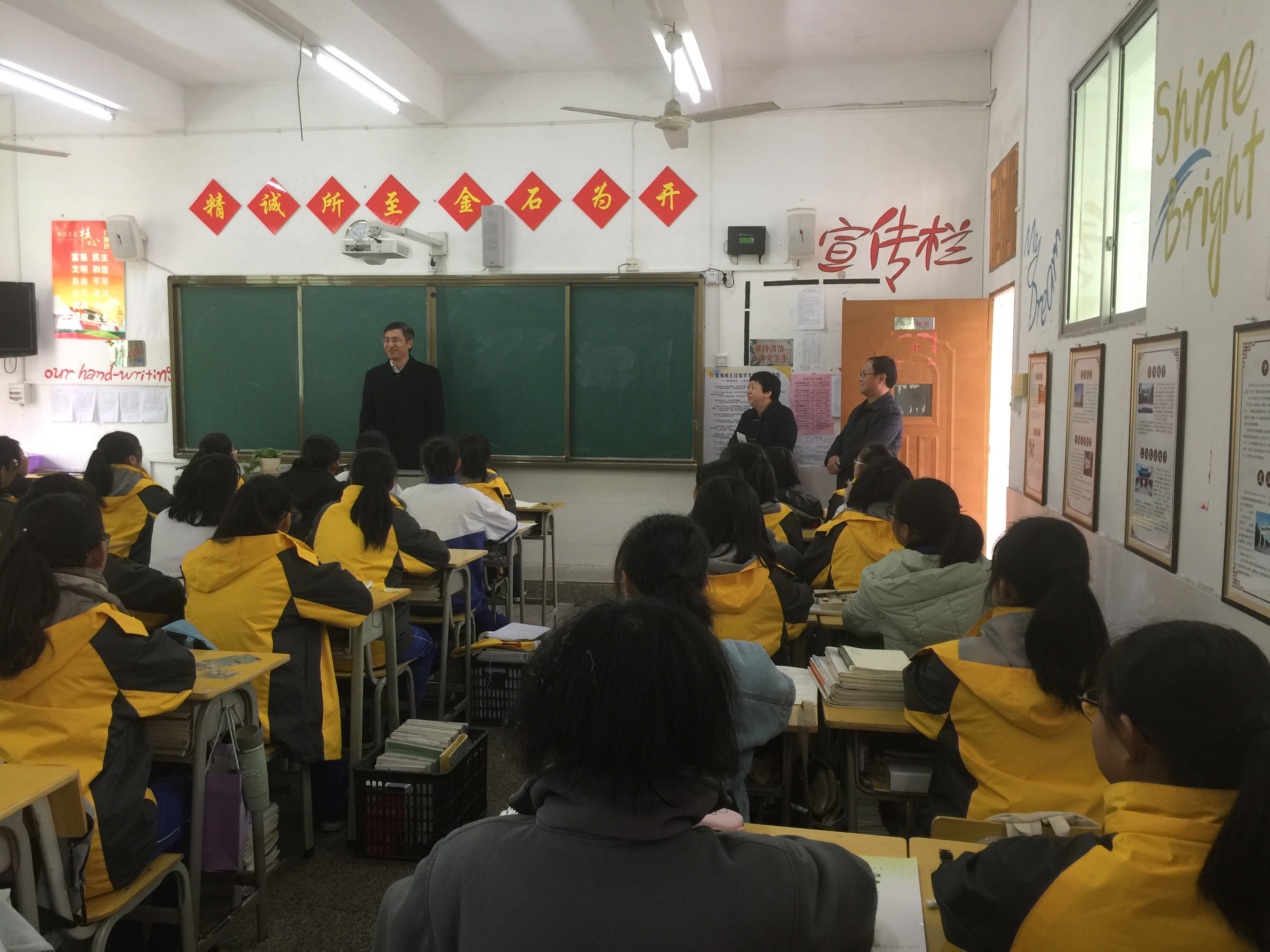 随后,根据校方的安排,贾梦秋、王海燕等人来到该校高一文科班与学生们进行交流。贾梦秋和王海燕分别结合自己的求学经验、工作经历,建议同学们树立明确的学习目标、注意寻找适合自己的学习方法、坚持不懈抓学习、持之以恒读好书、学习的同时不忘加强身体锻炼,立志做有理想、有本领、有担当的新时代有为青年,并祝愿他们考上理想的大学,“让青春之光闪耀在为梦想奋斗的道路上”。