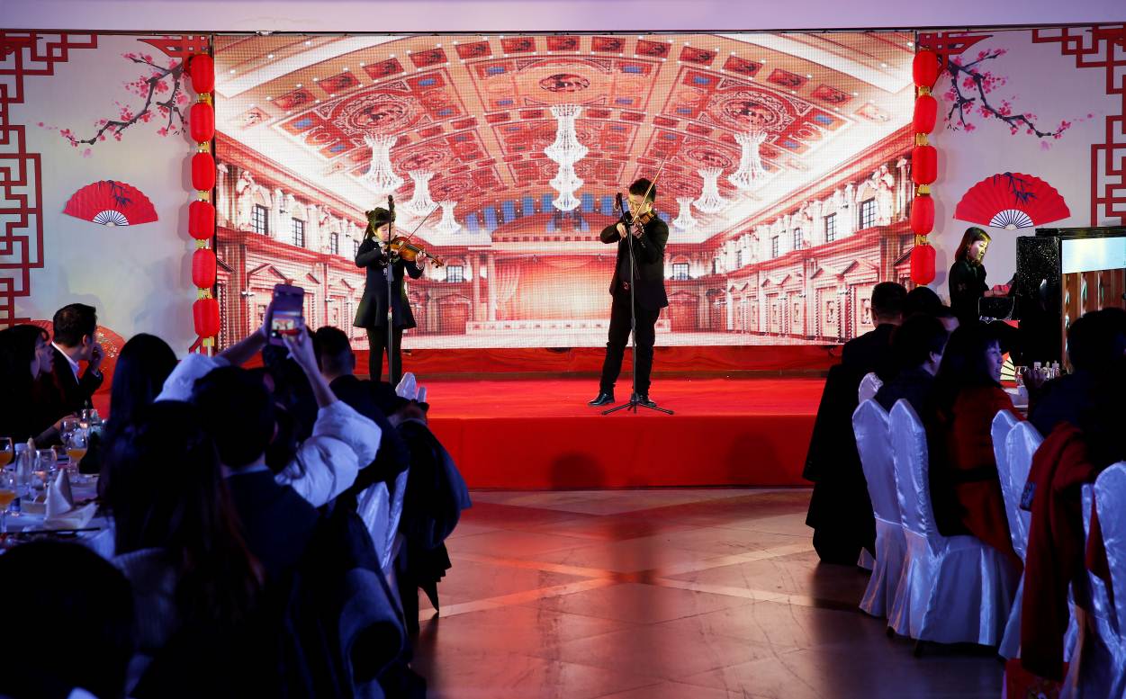 本次晚会所有节目由会员自编自演,充分展示了回国留学人员的风采。晚会以欢快的小提琴、钢琴协奏曲《新疆之春》和 《查尔达什舞曲》拉开序幕,其后会员们踊跃上台表演,古筝曲 《琴瑟争鸣,舞动新春 》、男生独唱《我的祖国》、古琴曲 《酒狂》、民族舞《上善若水》、古典口哨《魔笛》等精彩演出迎来大家的阵阵喝彩,晚会气氛喜庆而热烈,在一曲合唱 《我爱你,中国》中落下帷幕。