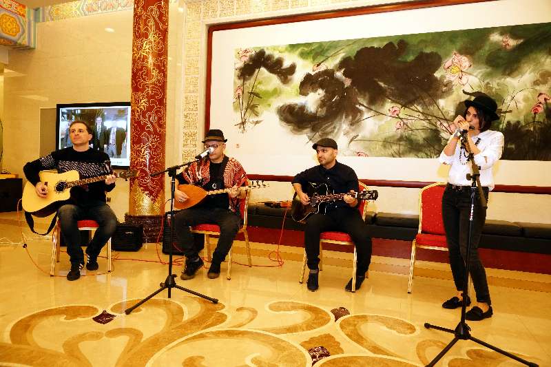 文艺活动由中外嘉宾共同演绎,表演在一曲热情洋溢的《我从新疆来》中拉开大幕,小提琴独奏《沉思录》让大家的思绪随着悠扬的琴声恣意徜徉,孔英演唱的京剧选段《梨花颂》和《红灯记》 十分专业大气让外国友人也听得很入迷 。 国际台外专四友团队的演唱,展示了“一带一路” 重要节点国家土耳其、伊朗的艺术,最后由欧美同学会时装队带来的《又见山里 红》中老年旗袍秀充分展现了海归女性的优雅气质,人比花红的迷人魅力。