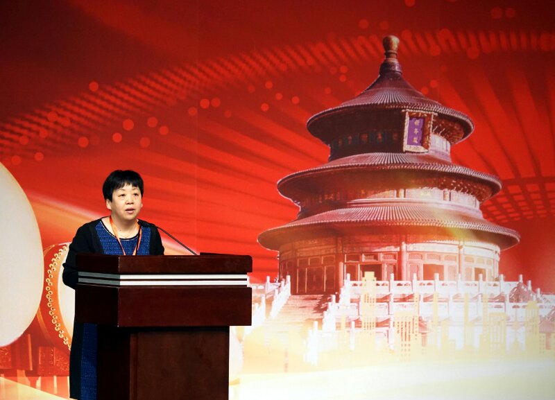 图为:欧美同学会党组书记、秘书长王丕君致辞