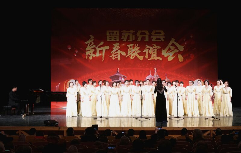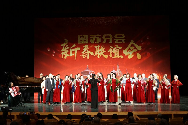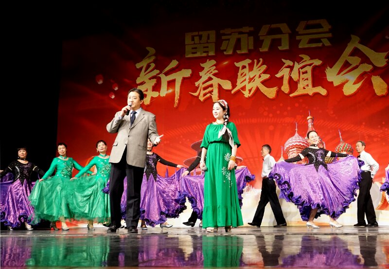 联欢会上,中俄两国的文艺工作者、留苏学长们献上了极具文化代表性和民族特色的节目,演出在热情欢快的《花儿为什么这样红》的群舞中拉开序幕。随后,二重唱《东方爱情故事》、手风琴重奏《俄罗斯歌曲联奏》、京剧《三岔口》、歌伴舞《莫斯科郊外的晚上》、钢琴独奏《梁祝》、武术表演《功夫少年》等 15个精彩节目次第上台,用 中西合璧的精彩演绎向来宾们问候新春。