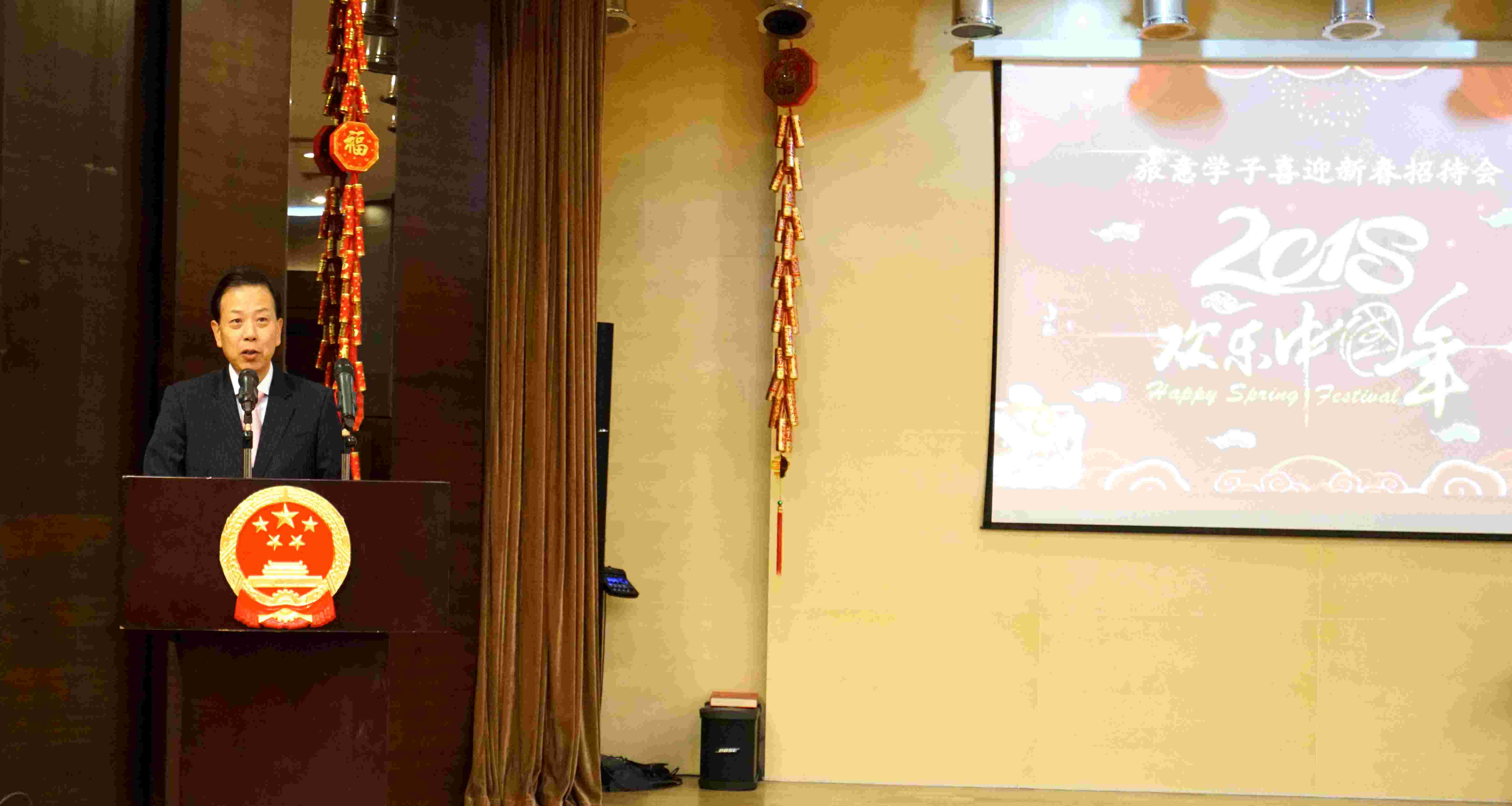 李大使在讲话中首先欢迎大家来使馆做客,代表使馆在新春佳节即将到来之际,向全体出席人员并通过他们向所有旅意留学人员和孔子学院的教师、志愿者致以最美好的祝愿。李大使与全体师生重温了不久前胜利闭幕的党的十九大精神和重大意义并从政治、经贸、文化、科技、教育等方面向大家全面介绍了中意关系的总体情况,并寄语广大留学人员,希望大家继续认真学习党的十九大精神、深刻领会习近平总书记给莫斯科大学中国留学生回信中对广大留学人员的殷殷嘱托,不忘初心、牢记使命,早日成才报效祖国,与此同时,还要继续推动两国人民相知相亲,为深化中意友好作出更大贡献。