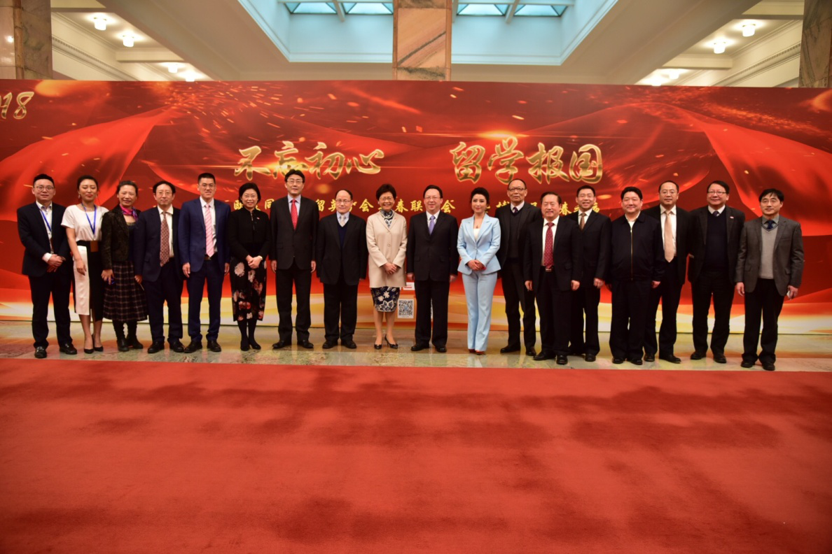 2月3日晚,欧美同学会(中国留学人员联谊会)留英分会2018年新春联谊会在人民大会堂举行。香港特别行政区行政长官林郑月娥,欧美同学会副会长、留英分会会长、中央人民政府驻香港特别行政区联络办公室副主任谭铁牛,欧美同学会党组书记、秘书长王丕君,英国大使馆公使艾琳,中国科学院控股公司董事长吴乐斌等领导和嘉宾出席。