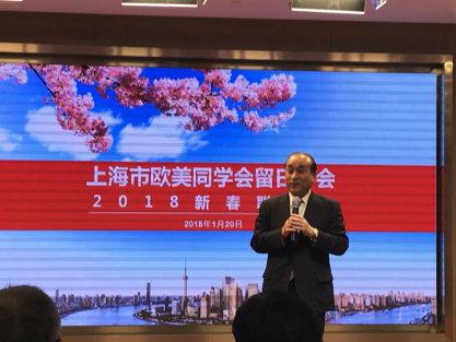 1月20日,留日分会2018年新春联谊会在上海民主党派大厦盛大召开,留日学长100多人欢聚一堂。总会常务副会长、留日分会会长臧广陵,总会常务副会长左学金,昆山市侨务办公室主任谢全林,日本驻上海总领事馆总领事片山和之、领事高岡智子,上海日本商工俱乐部理事长小宮健一,日本贸易振兴机构(JETRO)上海代表处所长小栗道明,日中经济协会上海事务所所长伊藤智,日本主流媒体读卖新闻、朝日新闻、每日新闻驻沪支局长吉永亜希子、冨名腰隆、林哲平等应邀出席。联谊会由著名媒体人吴四海学长主持。