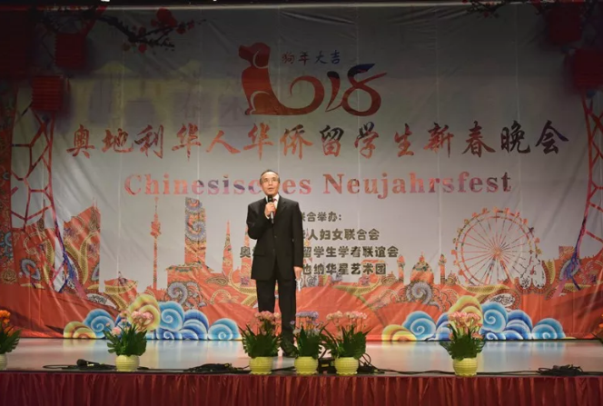 爆竹声声辞旧岁,喜气洋洋庆新年。2月9日晚,奥地利华侨华人留学生新春晚会在维也纳12区职业学校剧院举行。晚会由奥地利华人妇女联合会、奥地利中国留学生学者联合会、奥地利维也纳华星艺术团联合举办。李晓驷大使夫妇、丁雅贞参赞、文化处张志宏参赞、教育处负责人周志强老师等驻奥使馆人员应邀出席,与旅奥华侨华人、留学生及奥各界友人欢聚一堂,共迎新春的到来。