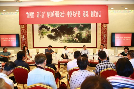 在政治上做文明的先行者。认真贯彻习近平总书记关于群团组织增强政治性的要求,始终把政治文明建设作为重要任务,在留学人员中开展社会主义核心价值观为主要内容的思想政治教育。着力引导广大留学人员坚定树立“四个自信”,开展“知国情、话自信”海归系列恳谈会等活动。党的十九大以来,进一步强化“四个意识”,第一时间举办学习会、座谈会、培训班,代表人士班55名学员共同发出《致海内外留学人员学长的倡议书》,引起海内外留学人员的广泛反响,广大留学人员纷纷表示要坚定做习近平新时代中国特色社会主义思想的学习宣传践行先锋。