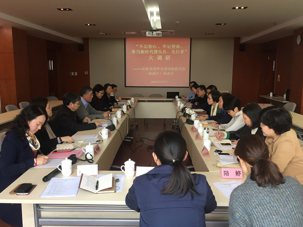 3月27日下午,结合市委统战部大调研工作要求,市欧美同学会常务副会长、国内院校分会组组长张伟江带队走访杨浦片区高校分会,与复旦大学、同济大学、上海财经大学、上海理工大学、上海电力学院、上海体育学院等6家杨浦区内高校分会座谈,听取各高校分会基本情况,对于同学会工作的意见建议。各分会负责人及高校统战部负责人等13人出席座谈会。与会人员反映,高校海归教师在岗位上建功立业,工作繁忙,参加同学会活动的时间、精力上有限。杨浦片区高校间历来有联动联谊的基础,应该激活联动机制,激发区域联动潜能,做活分会活动,凝聚更多优秀的海归教师为校贡献、为上海争光、为国家效力。
