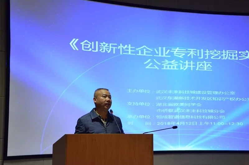 4月12日,根据归国留学人员企业和武汉未来科技城企业创新创业的需要,湖北欧美同学会联合武汉东湖新技术开发区知识产权办公室、武汉未来科技城人才企业发展服务中心在“湖北归国留学人员之家”多功能厅,举办了名为“创新型企业专利挖掘实务”的专题讲座。湖北欧美同学会会员及未来科技城园区企业代表共60余人参加本次讲座。