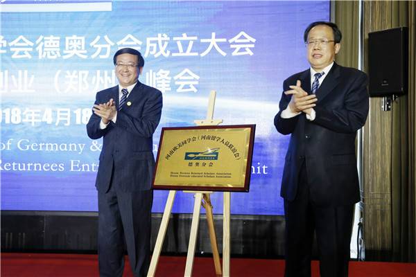 4月18日,河南欧美同学会(河南留学人员联谊会)德奥分会暨海归创业峰会在郑州举行,现场举行了揭牌仪式。
