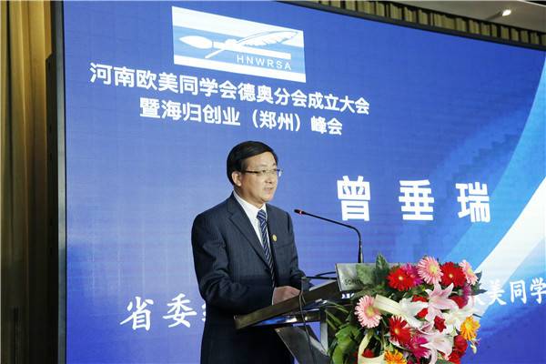 河南省委统战部副部长曾垂瑞在致辞中表示,在全省着力深化改革扩大开放,着力推动创新转型发展之际,德奥分会的成立,为德语系国家留学人员投身留学报国事业、释放智慧和才干搭建了更广阔的平台。